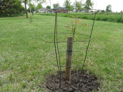 I was determined to get at least some of the trees in and managed to plant new conifers down by the creek (photos later). I also put in two Eastern Redbuds and one White Flowering Dogwood at the front of the house......